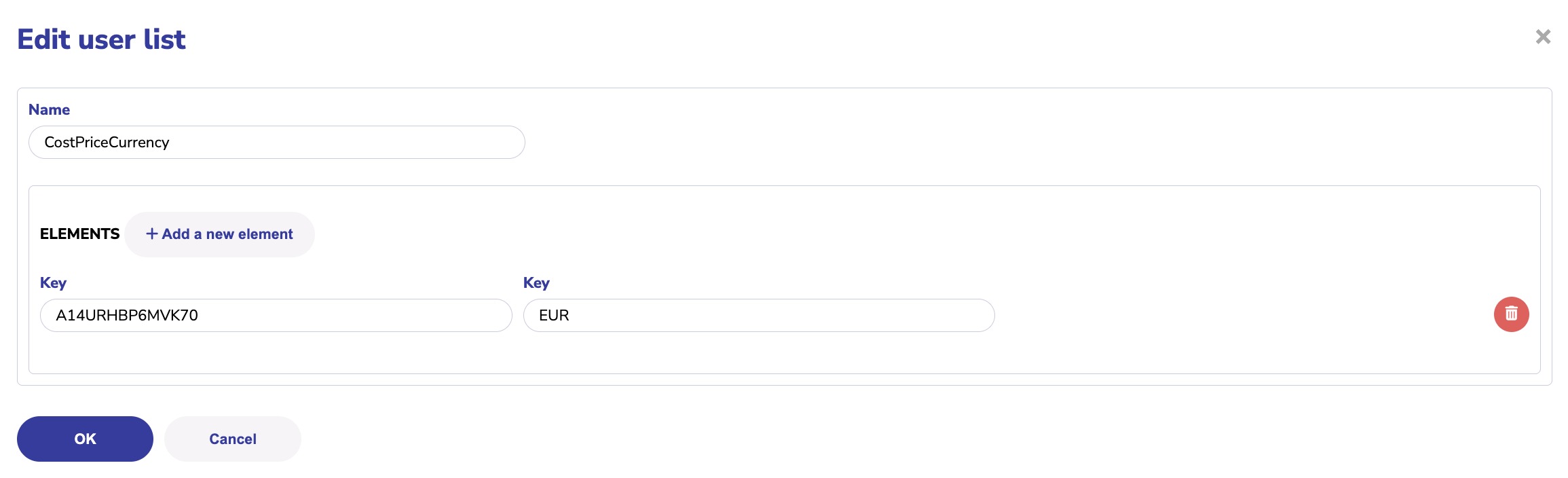 This list is a list of account ids with the corresponding currency that they report in: